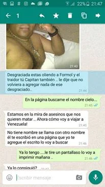 También reciben amenazan las personas que han estando colaborando con el Capitan, una de esas personas soy yo, por querer llevar la verdad al Mundo a través de los medios de comunicación y redes sociales. Es por eso que hoy 10 de Septiembre de 2016 levanto la voz y acusó directamente a Nicolás Maduro Moros, Diosdado Cabello y todo su gabinete rojo que lo conforman.