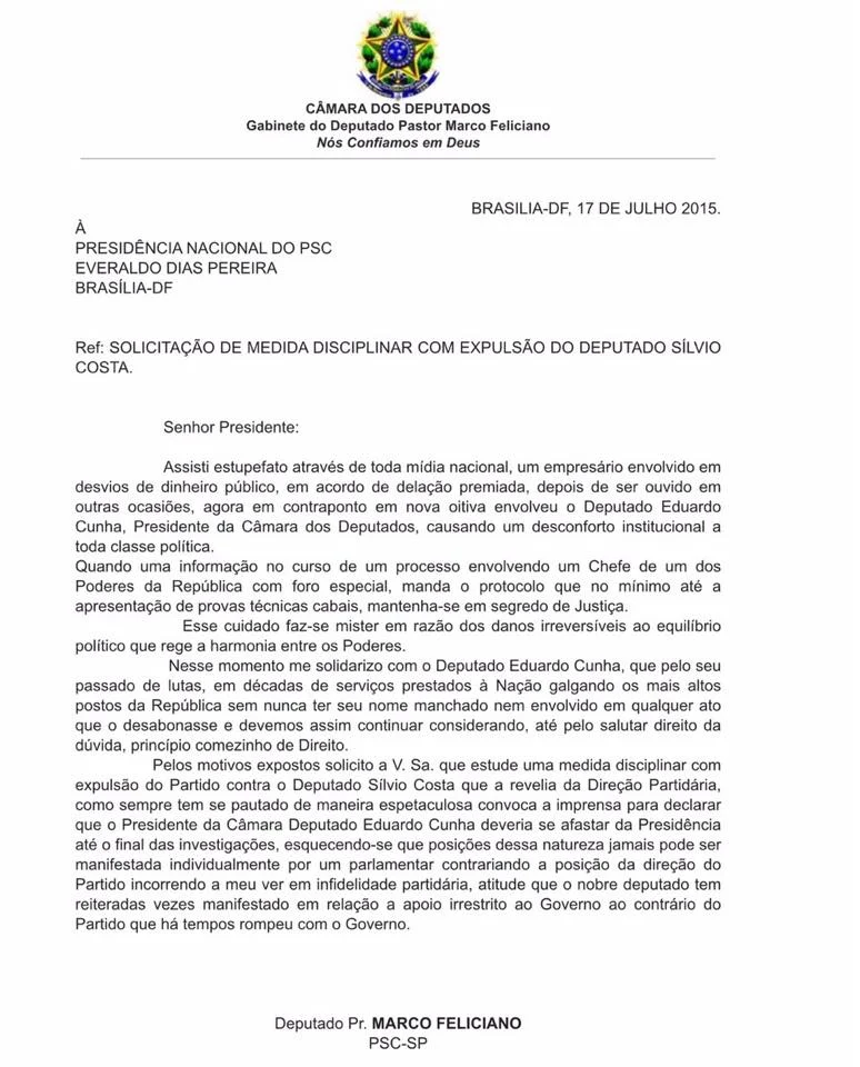 O meio político esta exatamente que  os adversários gostam, MARCO FELICIANO  não  ficou parado no tempo, enviou uma carta  cotra o deputado  do PSC BRASILIA-DF, 17 DE JULHO 2015.
